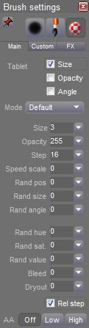 Archivo adjunto 233645 El selector de pincel personalizado le permite recoger una parte de su imagen y usarla como pincel. Al hacer clic con el botón derecho en esta herramienta, se abre el panel de pincel. Con el panel Keyer de pincel, puede hacer que las áreas del pincel sean transparentes. Consulte la sección sobre Pinceles personalizados.