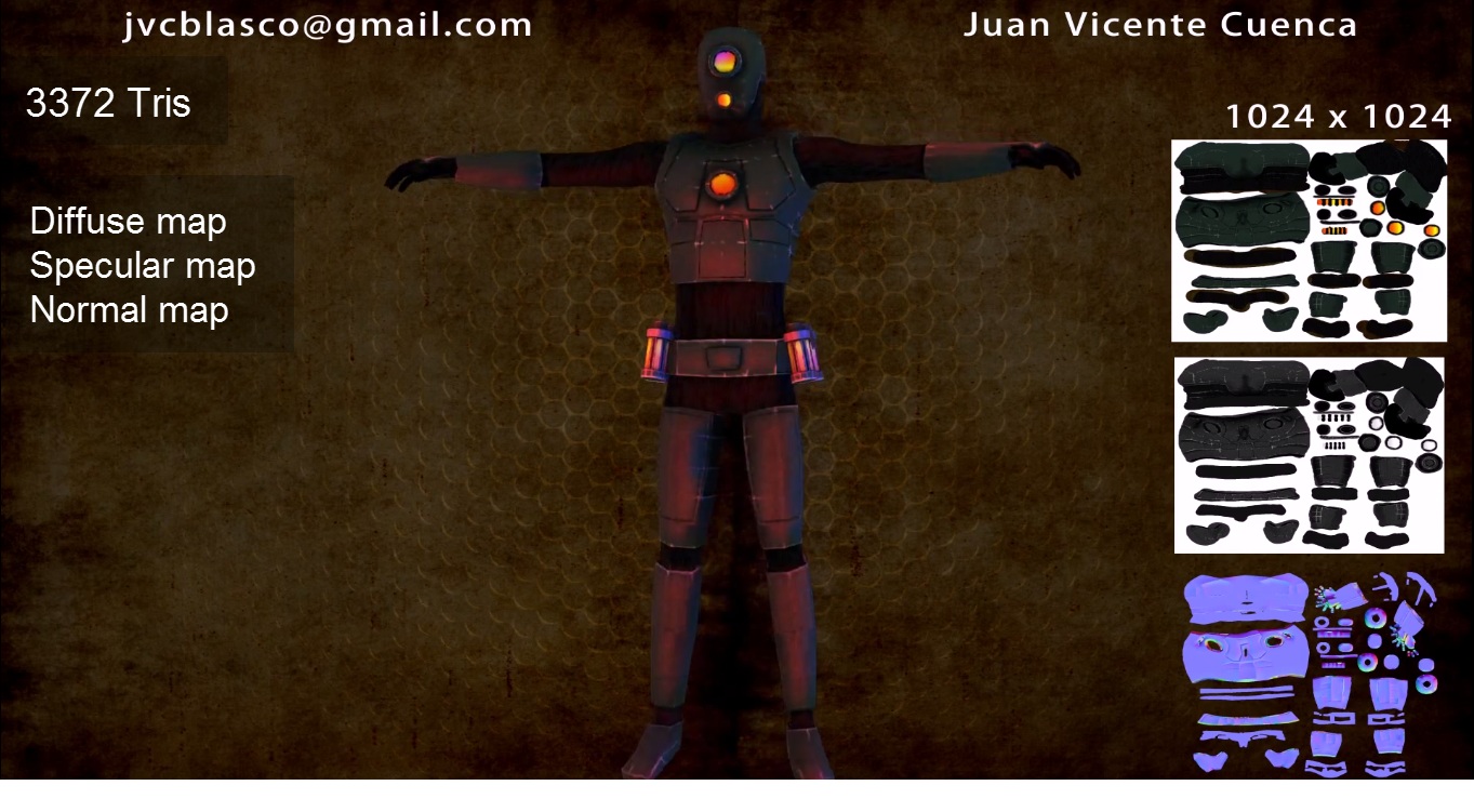 3372 tris. Diffuse map. Specular map. Normal Map.