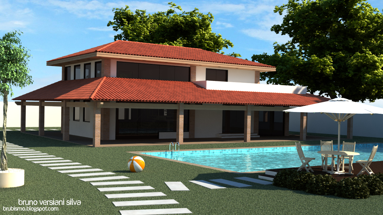La casa:tal vez los árboles demasiados eléctricos en el color, pero lo que te ha jodido la escena es el césped sintético y esas tablas blancas flotantes.