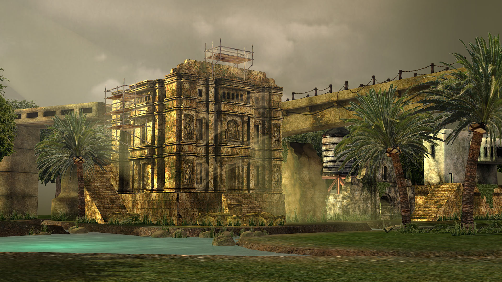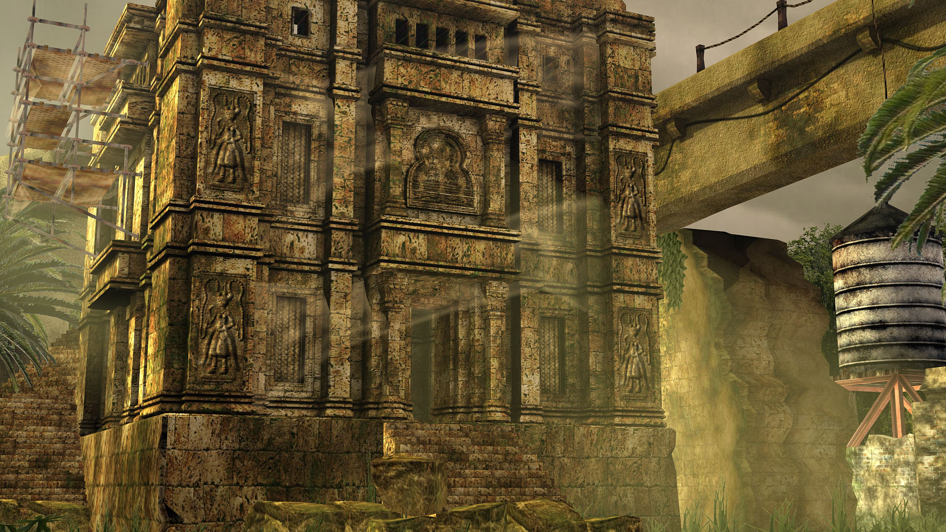 Hola yandrak. Modelado, Unwrap y backeo de texturas: 3ds. Texturas: Photoshop. Los mapas de normales los saqué en Adobe Photoshop desde las texturas de difusa y luego los backeé. Es decir, no hay mapa de normales en el slot del 3ds.
