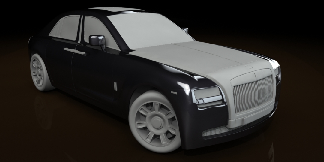 Pero el capo tiene un material distinto ¿no? Porque en el viewport se ve la carrocería negra y el capo gris, para que no te salgan las partes blancas esas mete el coche en un cubo y borra el techo del cubo y al cubo desactivale las sombras para que no cree sombras sobre el coche, así reflejara la luz mejor.