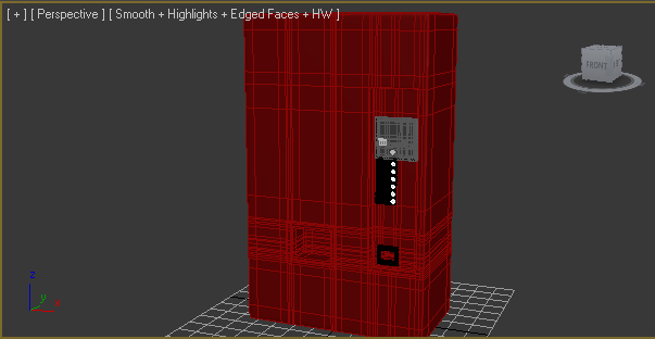 Esto es lo que ando creado (por dios, soy muy malo modelando, pero decidme que se ve que es una máquina expendedora de bebidas), ahora, cuando hago el Unwrap, solo se ve una gran amasijo redondo de vértices verdes, no me deja a mi darle los seams donde yo los quiero.
