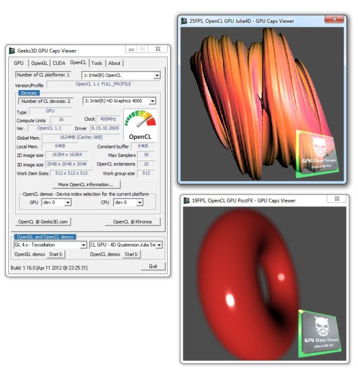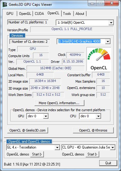 Intel ivy bridge Hd graphics 4000 GPU: pruebas de opengl y opencl