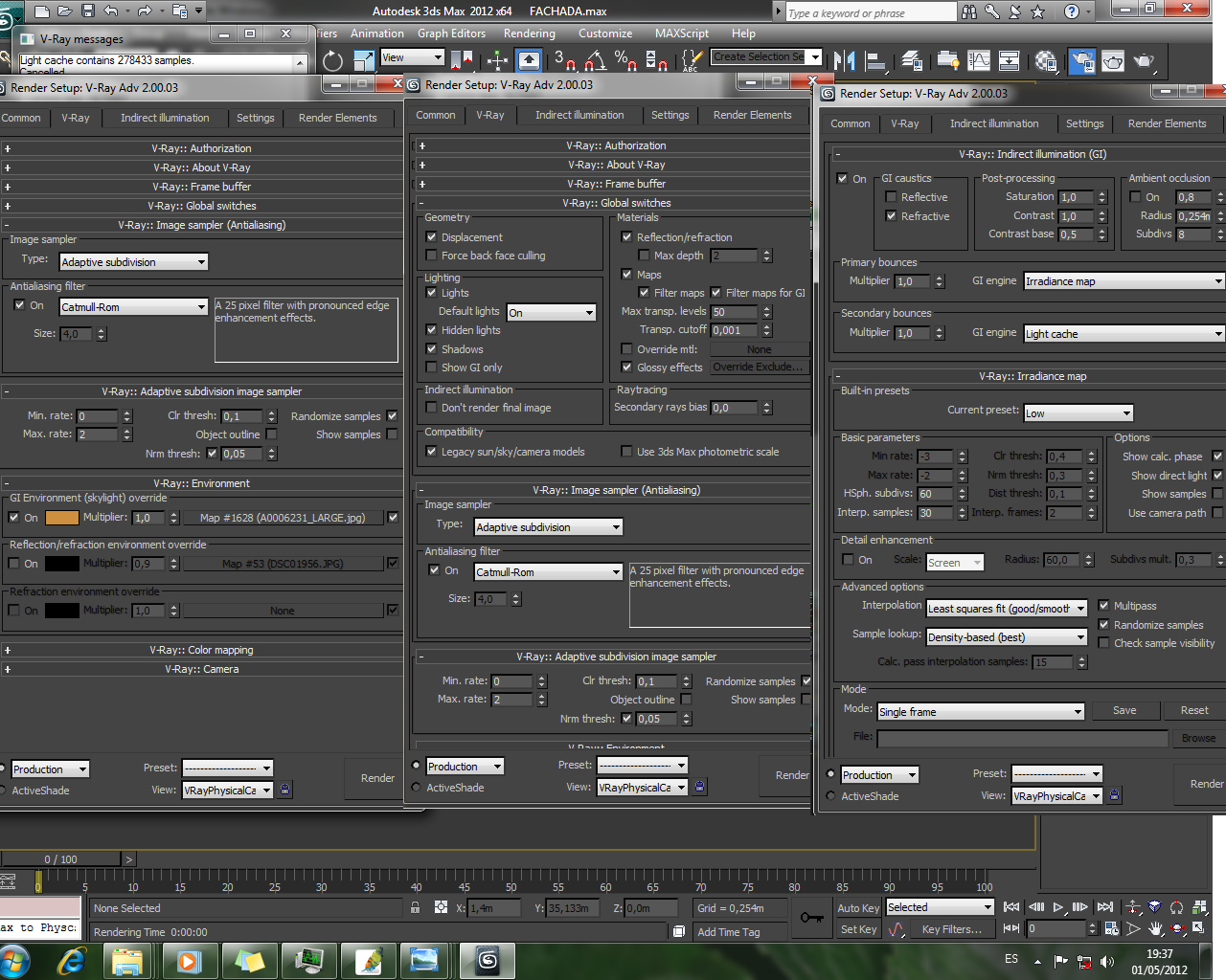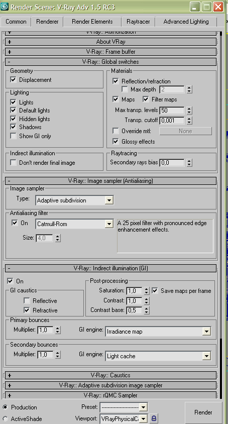 Hola a todos, mi tema es el siguiente. He cambiado de PC. Yo renderizo con 3dsMax más Vray. Anteriormente con el PC vieja, trabaja con 3dsMax 2010 32 bits y Vray 1,5.