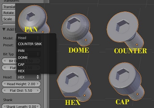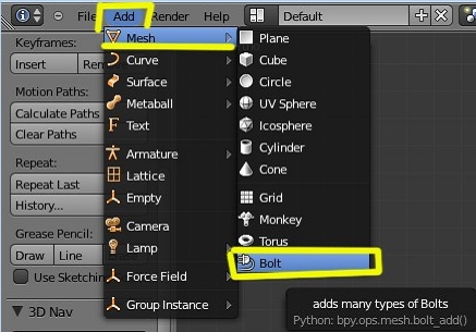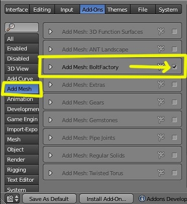 Add-on Bolt factory. Los scripts que se utilizan ahora para la nueva versión de Blender 2.5 están hechos de una forma que los podemos incorporar al programa de una forma mucho más sencilla.