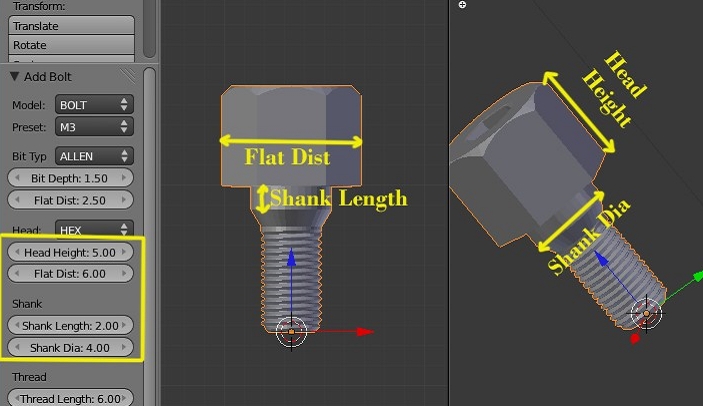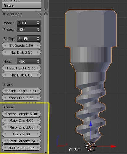 Esta opción al seleccionarla, lo que hará es crear un tornillo y antes de modificar nada, debemos mirar en el panel de la izquierda (tolshelf - Barra de herramientas) una nueva pestaña que tiene que haber salido llamada add volt. Si no está a la vista la tool shelf, presionar la tecla t.