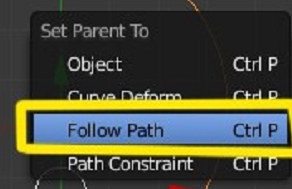 Lo siguiente es emparentar el objeto (susana) a la curve. Para ello seleccionamos primero el objeto y con shift presionado seleccionamos la curva, presionamos Control + p y follow Path: