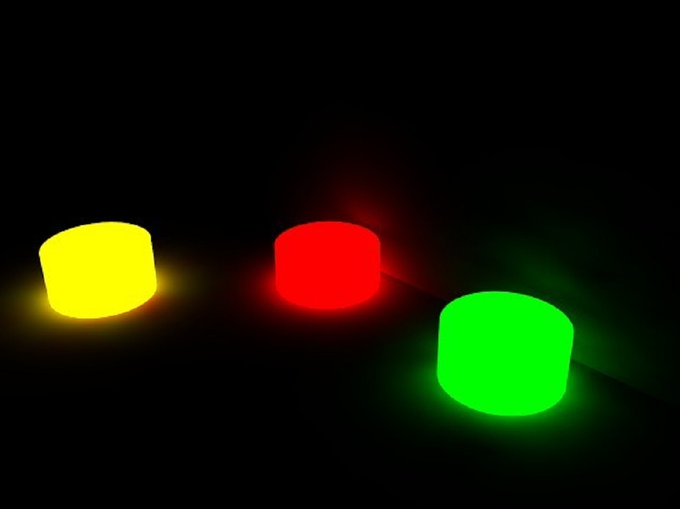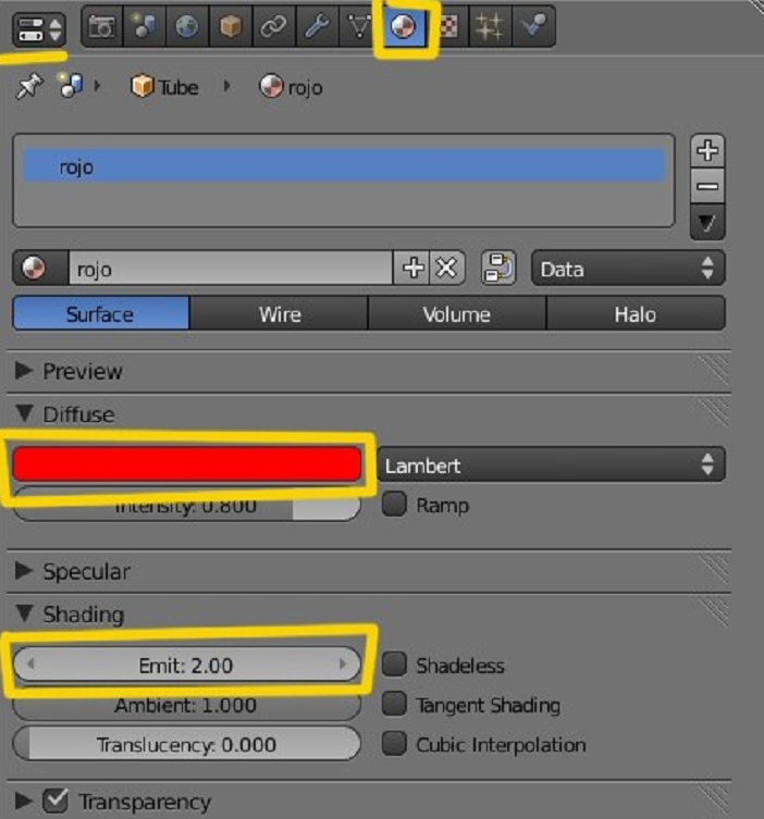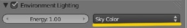 Como se ve, lo único que hay que hacer es subir el valor del emit. Yo he puesto 2.00 que es lo máximo, pero se puede trabajar con menos, repetimos lo mismo con los otros cilindros y poniendo colores diferentes, lo siguiente es poner los valores del world, marcamos la casilla de environment lighting:
