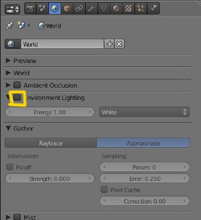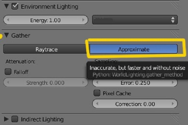 Ahora ya tenemos una pestaña llamada indirect lighting, la cual debemos marcar en su casilla.
