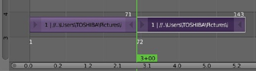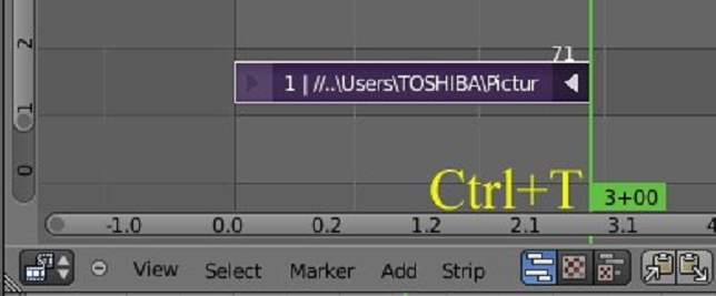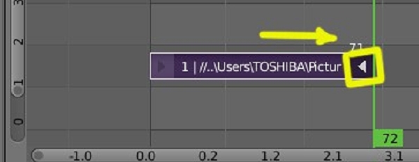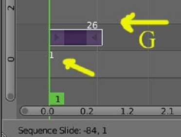 La imagen tiene una cantidad asignada de frames (26), pero eso lo podemos modificar. Para eso hemos de pinchar sobre el triangulo que tiene en la derecha, con el botón derecho del ratón. Se tiene que ver el triángulo de color blanco. Y entonces movemos (con g) estirando hasta el frame 71 (son los tres segundos) (hemos de pensar, que como empieza en cero y también se cuenta, 72 frames son del cero al setentaiuno):