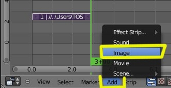 Si ahora, por ejemplo, queremos poner una imagen y que su duración en pantalla sea de 3 segundos, tendríamos que calcular 24*3 o sea, 72 frames, que serían tres segundos, bueno, ahora que ya sabemos más o menos cómo se visualizan los segundos o frames, vamos a poner imágenes. Se trata de poner unas cuantas imágenes, una detrás de otra, ajustando los tiempos deseados, para añadir la primera, presionamos add > image: