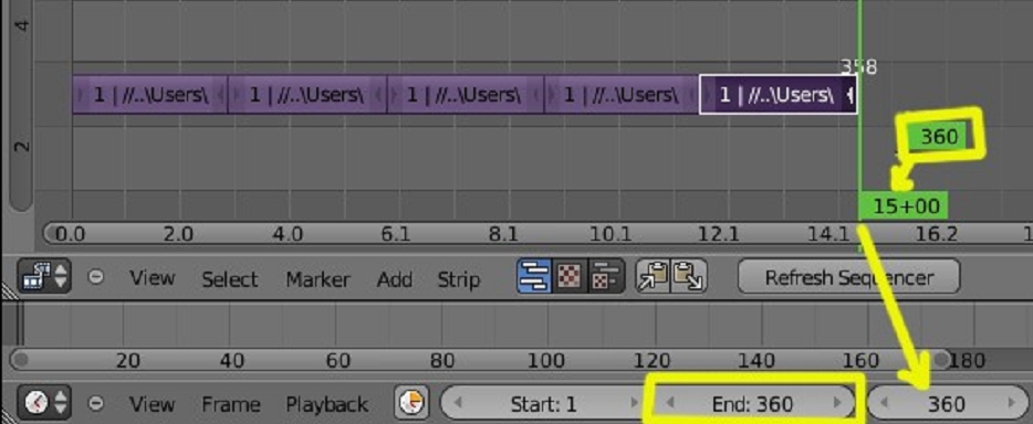 Repetimos hasta la última imagen, y veremos el tiempo que necesitamos para nuestro render. En este caso son 360 frames (15 segundos):