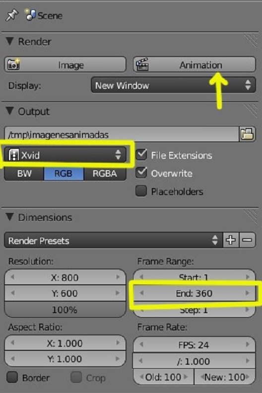 Y ya podemos crear la animación cambiando a Xvid o cualquier otro formato de video: