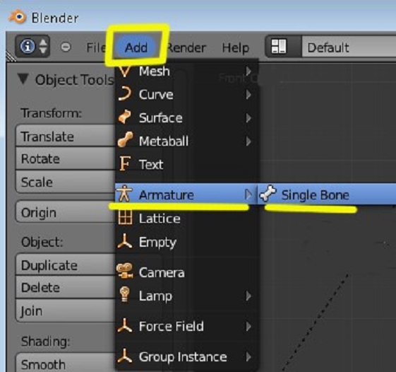 Para colocar un bone de la armature, lo podemos hacer desde, add > armature > single bone: