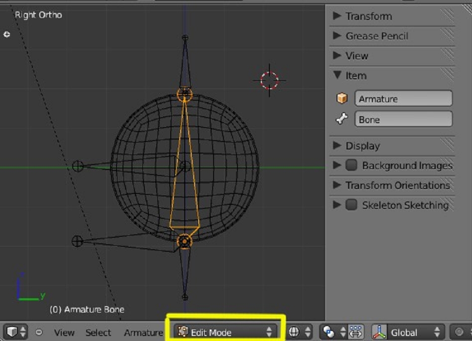 Una vez tengamos el hueso (bone) miramos que esté bien centrado, tanto desde vista lateral como frontal, y lo estiramos hasta ajustarlo en altura: