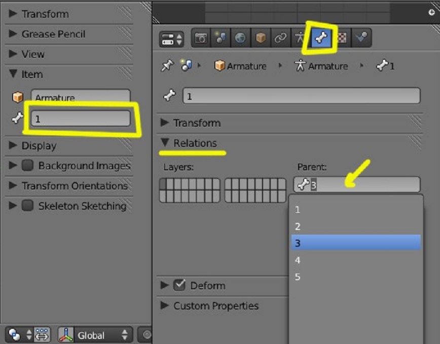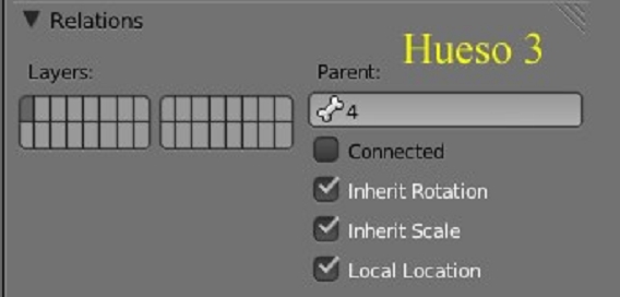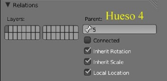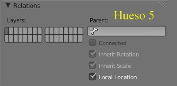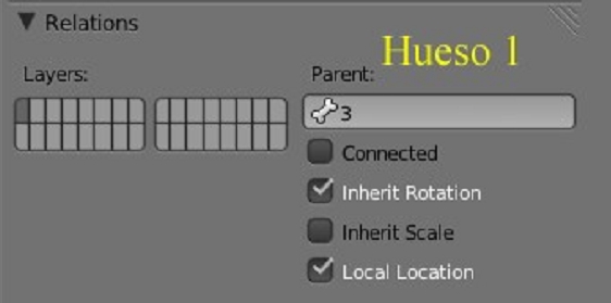 En vez de utilizar lo de seleccionar primero un hueso luego otro Control + p voy a utilizar la opción relations donde lo podemos hacer de una forma más visual: