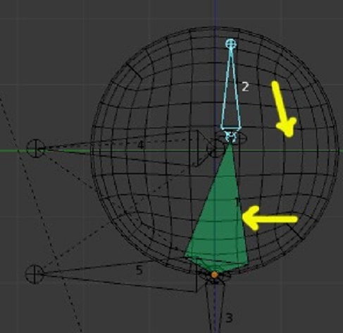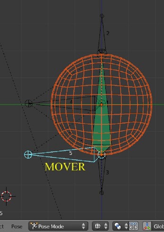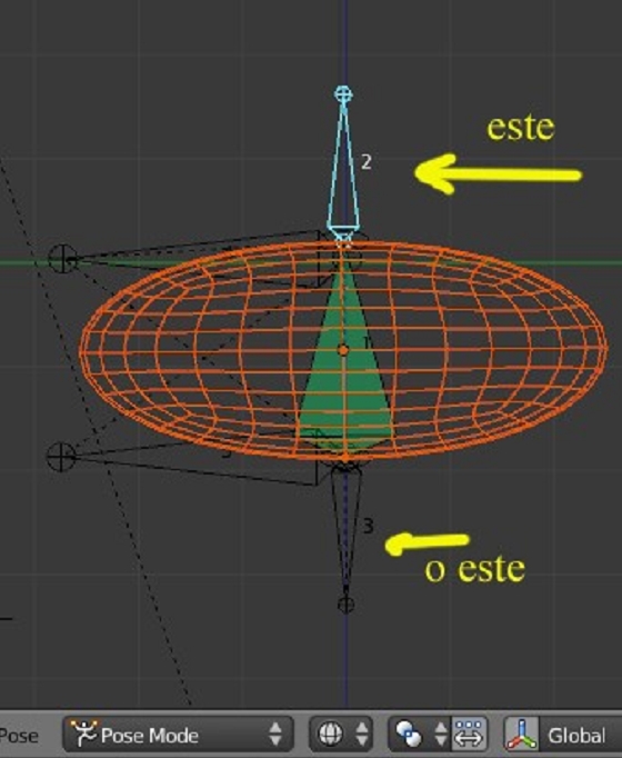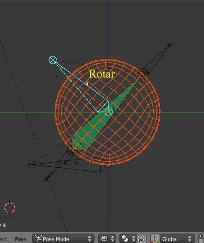 Y si seleccionamos el hueso 4 podemos rotar la esfera tanto desde vista frontal como desde vista superior: