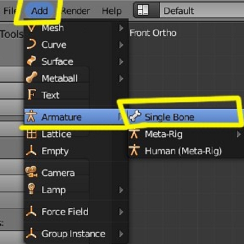 Lo rotamos (r) y extrudimos (e) para crear una armature de cuatro huesos: