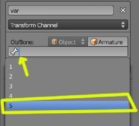 Seleccionamos armature y el bone número 5 que es el que hemos puesto en la parte superior: