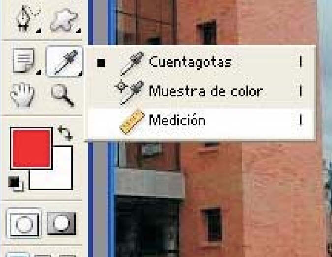 Cogemos la herramienta medición que se encuentra en el desplegable del cuentagotas (atajo para movernos entre las distintas herramientas de este menú):