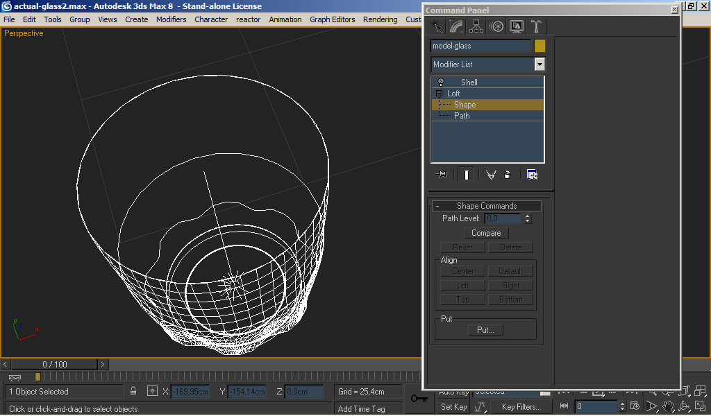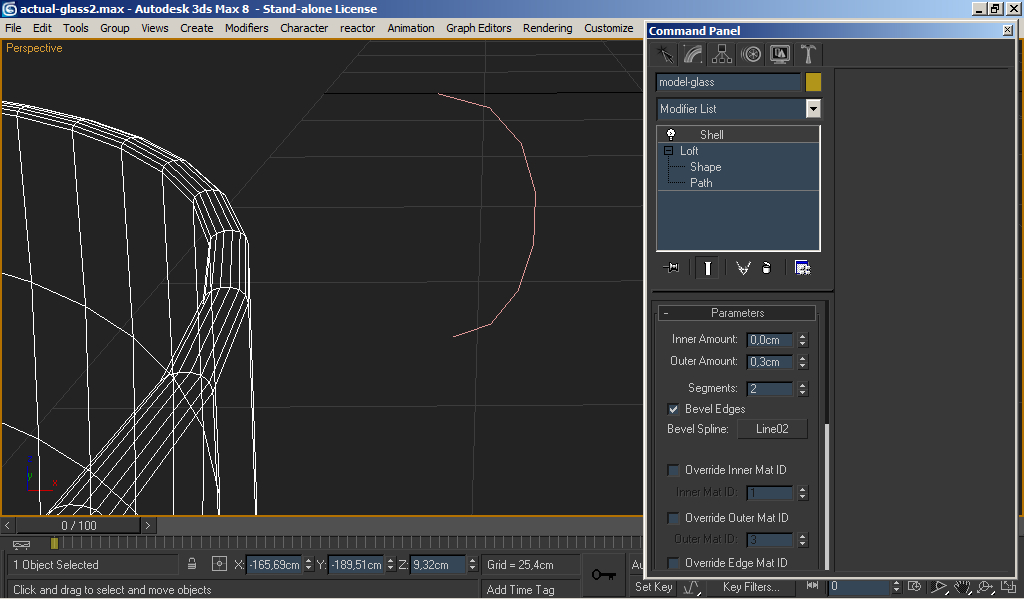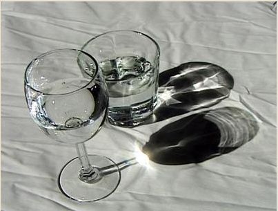 Escena realizada con Mental Ray con Caustics. Sólo un Mental Ray Spot se ha colocado desde la izquierda. El vidrio es un material DGS phenomena.