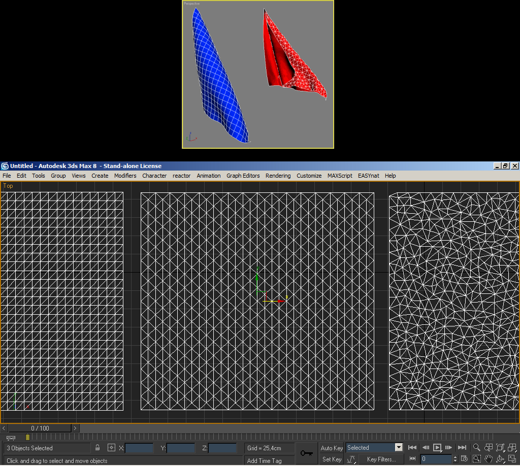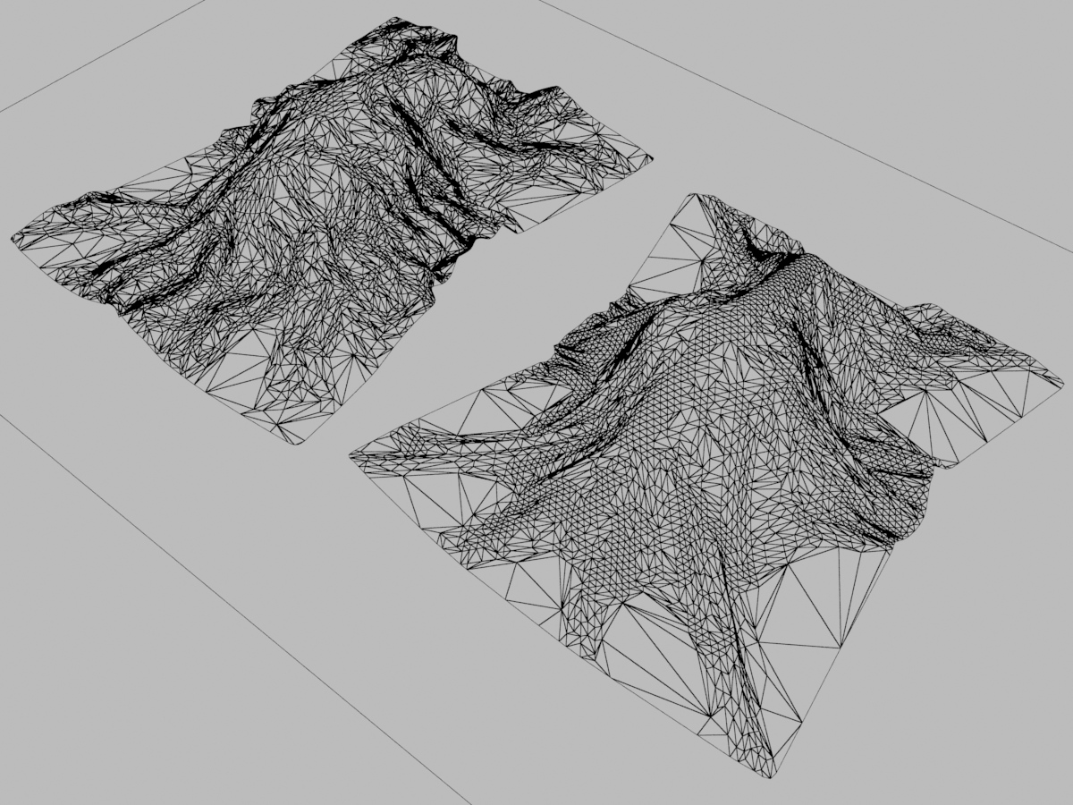 La subdivisión de tipo delunay, que es de triángulos en lugar de ser polígonos cuadrados bipartitos, es más adecuada para resolver telas pues es isotrópica (se deforma igual en todas las direcciones).