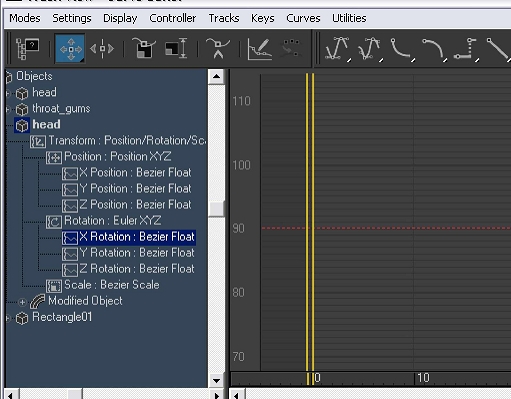 Entonces abrimos el editor de curvas y selecciono la rotación x de mi hueso delantero: