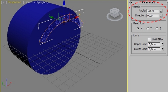 Ahora hemos de darle cierta curvatura al texto, para que se adapte a la forma circular del plano sobre el que lo vamos a trabajo. Para ello vamos a utilizar el modificador bend (curvar). Ve al panel modify y selecciona el modificador.