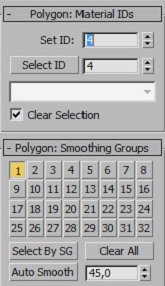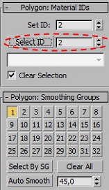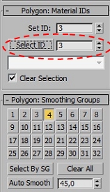 Para que entiendas mejor cómo funciona esto, si tienes un cilindro (edit poly) y seleccione el nivel de subobjetos polygon en la parte de abajo del panel modify te aparecerá este apartado. Según el id que selecciones en él, se seleccionara una u otra parte del cilindro.