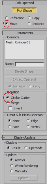 Selecciona el objeto principal que en este caso es el cilindro y pulsa el botón Shape Merge.