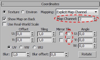 Pero observa que ahora hemos seleccionado map channel 2 y hemos desactivado las casillas tile.