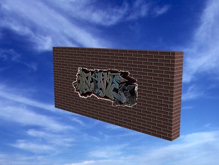 poner grafiti en muro de ladrillo. Utilizando composite.