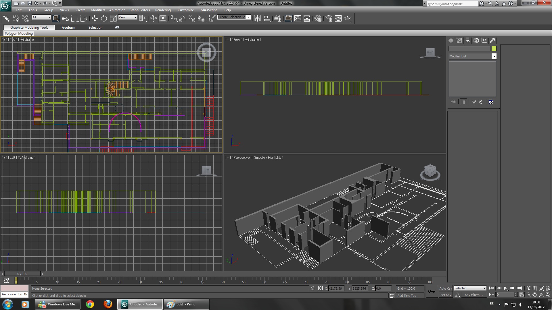 Hola, llevo un tiempo haciendo un pequeño curso de 3ds Max 2011 y hasta ahora me ha ido bien y me salen las cosas bastante bien, pero ayer en un ejercicio que importamos un plano de una casa hecho en AutoCAD, en las vistas superior, frontal y lateral, cuando extruyo los muros de la casa se ve perfectamente el color de los bloques (no tiene aplicado ningún mapa de color, son los colores que te porne el programa para las cosas que creas), pero cuando lo ves en la perspectiva o haces un render de la perspectiva, se ve negro. Primero pensé que serían las normales y las volte, pero se sguia viendo igual, después pensé que igual era por la iluminación y se la puse y lo mismo, mire algo por internet y la gente hablaba de que las normales estarían volteadas y cogí y ensanche un muro y me metí dentro y las normales estaban bien. Como no sabía que hacer instale el 2010 y hace lo mismo solo que en este se ve en la perspectiva todo en tonos grisáceos. Y no sé que puede ser, así que, os pido hayuda a vosotros los expertos de este programa. Gracias de antemano.