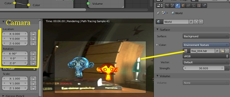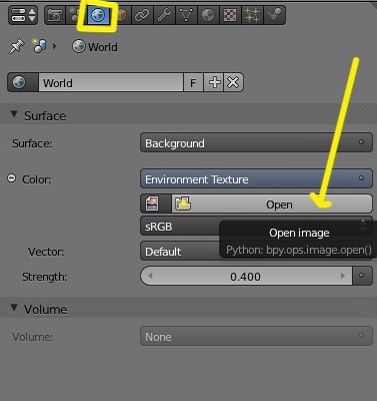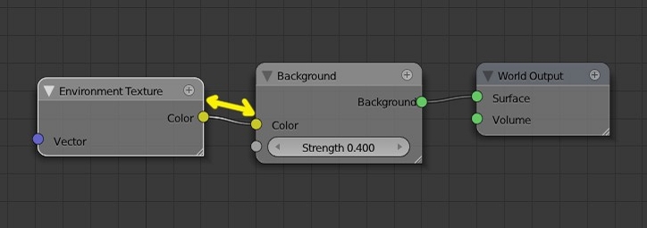 Y ya tenemos la opción de ponerle color a nuestro universo (world) y subirle o bajarle la intensidad con strength (lo podemos hacer en la ventana de nodos o en el panel de world).