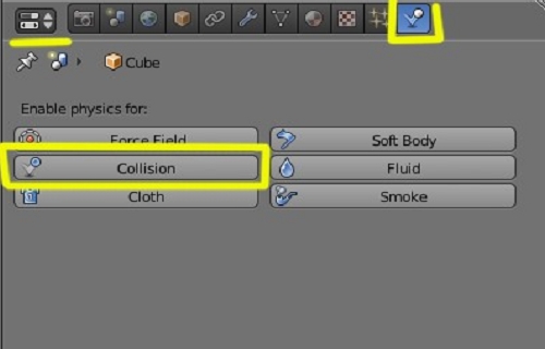 Hay un modificador llamado collision, que sirve para eso, para que los objetos que contienen, por ejemplo, Cloth, softboy, particles, etc choquen contra el, la forma de funcionar es muy fácil, solo hay que ir al apartado de físicas y presionar el botón collision: