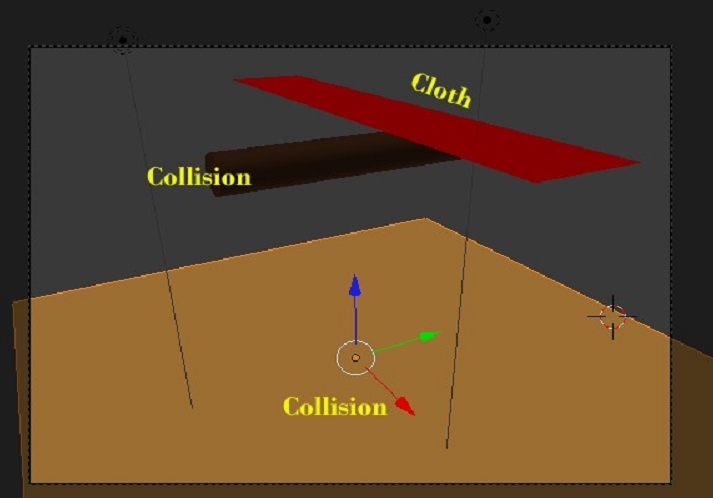 He creado una escena donde una tela (Cloth) chocara primero con un cilindro y luego caerá al suelo, tanto el cilindro como el suelo tiene colisión: