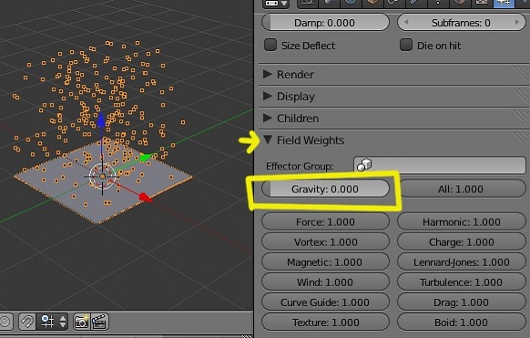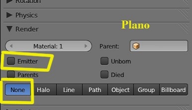 A partir de aquí, podemos utilizar el sistema de partículas del plano para diferentes objetos, y también podemos esconder el plano para que no se vea: