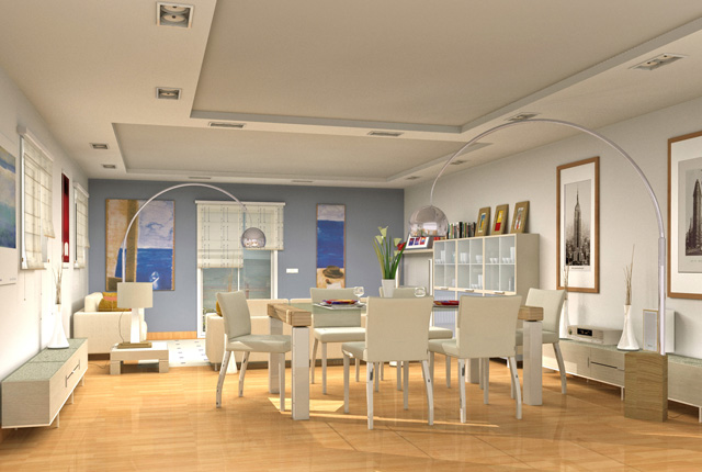 Creo que está mal iluminado, me refiera a la luz en general, parece que estuviera iluminado desde dentro y con algo de luz que entra por la ventana, pero, sin embargo, las lámparas están apagadas, las de pie y las del cielo, quizás dándole algún efecto a las lámparas para que parezcan prendidas se vería más creíble.