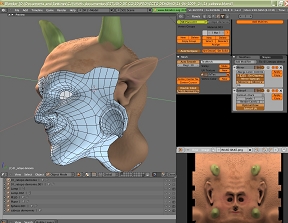 A esa malla le hago el Unwrap desde el nivel 1 de multires y bakeo la oclusión ambiental, me sale la cara desplegada en blanco y negro. Lo que se ve en la captura es después de haber pintado encima usándola como referencia: