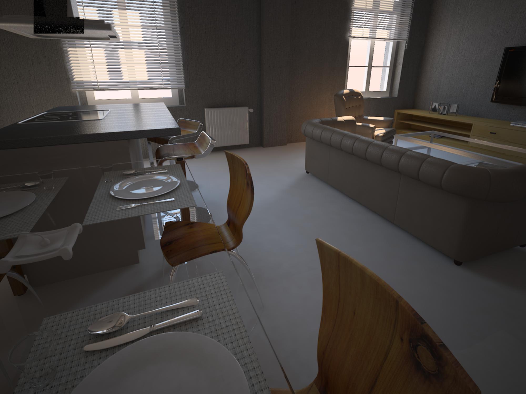 Hola. Tengo un problema con las sombras entre los objetos, que no salen, y entonces parece que nada esté tocando el suelo o la pared. Fijaros en los cuadros y en las patas del sofá.
