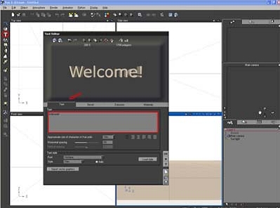 Create some text: todo do this, click on the text editor button on the left hand side of the screen. Click on the text tab and then enter the text you want in the text field. In this example i have enter the Word welcome. You can change any of the other parameters on this screnif you would like todo customise your font style in a diferent way. Exit the text editor when done.
