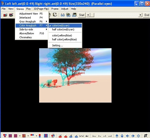 Now you have todo decide what type of Stereo output you want todo create. Go todo stereoin the menú todo select the type you want. I choose color anaglyph/color (red/cyan).