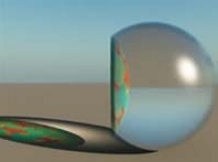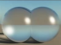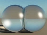 In the third image i changed teh material of the left sphere todo coloured Glass. You can se how this material has left its influence on the right sphere which it has biten into.