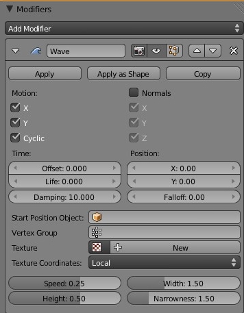 El modificador wave, se puede utilizar para crear efectos de movimiento como, por ejemplo, las olas del mar.