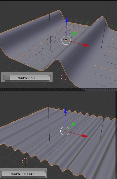 Y con narrowness conseguimos cambiar de una curvatura a crear crestas de ola más puntiagudas subiendo el valor.