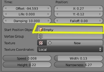 Aunque también tenemos la opción de indicarle un objeto que será el que marque las coordenadas. Por ejemplo, se puede crea un Empty (o cualquier otro objeto) y luego solo debemos poner el objeto seleccionado en la parte de start position object:
