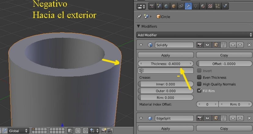 Y si lo movemos en valor negativo, el grosor del objeto crece hacia el exterior.