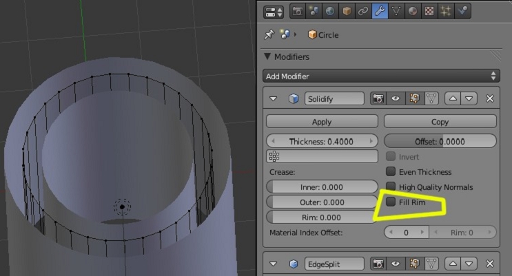 Si desmarcamos la casilla de fill Rim desaparecerá el borde del objeto.