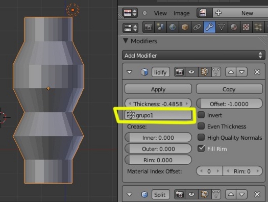 También podemos hacer un grupo de vértices y luego utilizarlo en el Solidify.