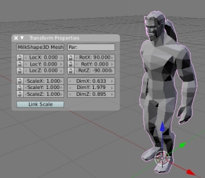 Seleccionamos la malla con el bdr desde modo objeto y pulsamos n para abrir el formulario transform properties y rotamos (rox y rotz) hasta corregir la posición de la malla.